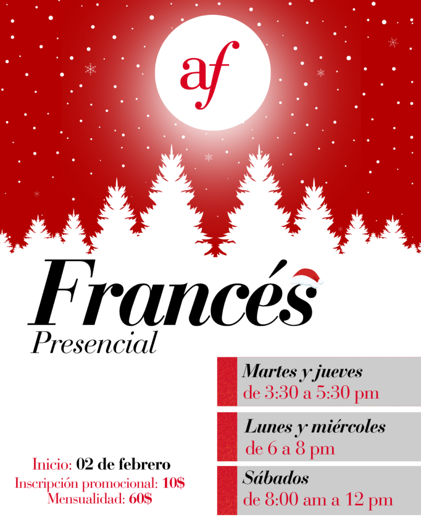 ¡Prepárate para un 2026 lleno de cultura, aprendizaje y nuevas experiencias! La Alianza Francesa anuncia que las inscripciones para nuestros cursos de francés presenciales del próximo año ya están abiertas. No dejes pasar la oportunidad de asegurarte tu lugar en la comunidad que hace del aprendizaje una aventura inolvidable.